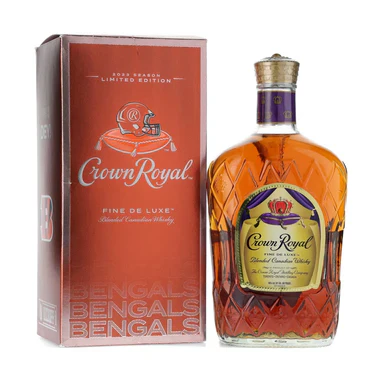Crown Royal Cincinnati Bengals Edition is a special commemorative Canadian whisky celebrating the NFL team. This expression delivers the smooth, approachable character Crown Royal is known for, combining light sweetness, gentle spice, and subtle oak influence. Its elevated bottle size makes it ideal for gatherings or collectors seeking team-branded whiskies with classic Crown Royal flavor.